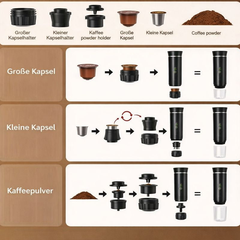 3-in-1-Kompatibilität (Nespresso, Dolce Gusto, gemahlener Kaffee) |